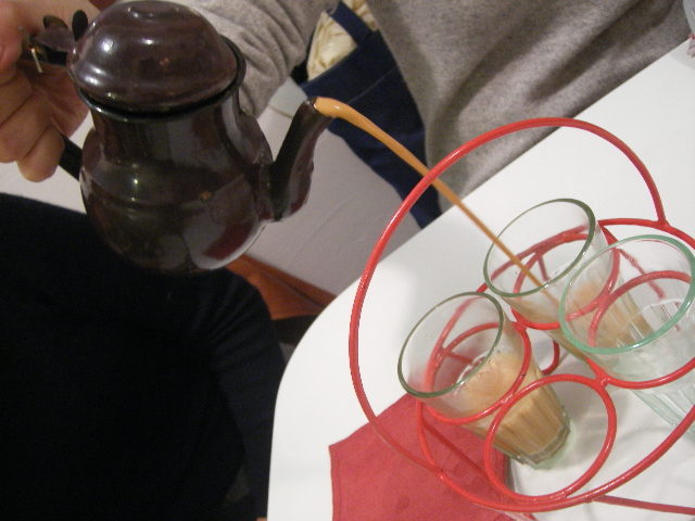 始めたのも早かったのは早かったんだけど、食べ終わるのも早かった(爆)で、-といいわけをしてーこちらにてデザートタ~イム♪ ワタクシは3度目訪問です。(←すっかり気に入っている) 夜は外はなかなかムーディー。 ピッキーヌからココに流れるのは、夜でも昼でもいいかもです。 もっとも、ココのカレーも食べたいので、そのコースに決め付けれないのが難点ですが。 スイーツをしっかり3人前お願いする。 これはクルフィー。しっかり小さいのが3スクープ。 喧嘩にならずにいいね。(爆) これは、かな~り甘い。ド甘が好きな人はいいけれど、小さいのでいいかも。美味しいけど、あのインドの暑さの下で食べたい感じです。ココナッツ風味がそんな感じ。 ホーローポットが雑貨好きのはあとをどっきんこ☆ 濃厚なチャイをいただきます。小さいグラスを3ケ快く持ってきてくださったけど、これがまあ、持ってくるものまで可愛いったら!! ポットなんで、ちょっとエアブレンドをきどってみたりもしてね。 これはたまらん! ちなみにランチセットのドリンクのチャイは、このグラスで出てきます。 単品チャイ、かなりの分量でお得かも。 ところで、この日の大ヒットがこれ。 スパイシーホットチョコレート。 大振りのカップに、その名の通りのスパイシーなほのかに甘いホットチョコレートが。 こ、これは!! とものすごくうれしい、驚き。 それほど美味しい☆☆☆ 一人で、こちらに来て、これ頼んでまったりしたい。 そんなメニュー。 ・・・そうしちゃおうかな。。。 1回目・・・http://curry55.exblog.jp/8748724/ 2回目・・・http://cahanamasara.blog.shinobi.jp/Entry/180/
