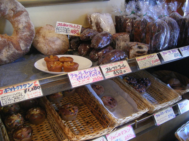 11/01/19:44 伊豆の癒しの場 @湯河原 ・・・とくれば。そう、湯河原の名店、ブレッド&サーカスです!!! 年に何回か、パンの美味しさもさることながら、奥様の癒しを求めて遠出をしてしまいます。 そして、それは裏切られることはなくて・・・。 今回も癒されて帰ってきました♪ たっぷりかぼちゃの優しいマフィン。 グローリーパイナップルケーキ(でいいのかな?) ファーブルトンみたいな可愛いケーキ。 食後の別腹にぴったりです。 大好きなプレッツエル。 2個買って一人で食べた。(笑) かぼちゃのは初めて食べました。 なんとも大人なクリームパンで、上品なまったりとしたクリームでした。あんまりかぼちゃっぽくなかったかも、なので、もう少しかぼちゃかぼちゃしててもいいかもと思いましたよ。 最近定番になりつつある、食事パン。 お値段と大きさ、そしてシチューやスープにあるのでつい買い求めてしまいます。 パーフェクトシナモンクランチがなかったのでこれにしてみましたがこれが大正解!! 美味しかった~。シナモンの山!! シナモン好きにはたまりませんわっ。 アメリカのコーンブレッドも好きだけど、こちらのコーンブレッドも負けていないのですよ。 コーンの甘味がする生地にコーンがちらばって、金色の豊穣を感じます。 ←そして、一番好きなのは実は食パンだったりして。