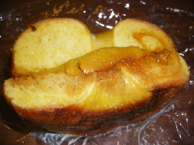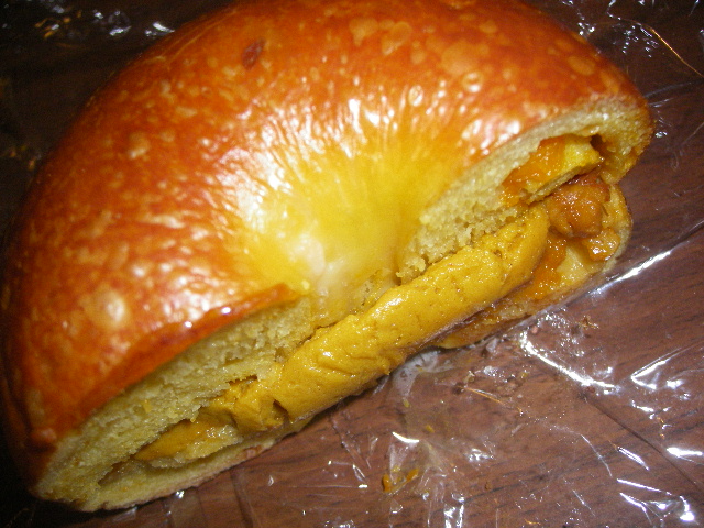 11/01/21:58 滑り込みセーフ!! その1 @西荻窪そう、ポム・ド・テールです。 最近イートインの日が限定のために、難関になっているこちらのお店。 たまたま休みをとった日にポムに行ったことがなかったというお友達をお誘いして伺いましたが、残念!30分前じゃ、一巡目のランチにはまにあいませんでした。いやー、難関だわあ。 それでも、これには間に合いました! 10月中の限定のかぼちゃプリンサンド。 これは南瓜ベーグルにサンドしてある、かぼちゃかぼちゃ。 この前テイクアウトでプリンサンドをいただいて、美味しかったので、是非これも食べたかったのですよね。 プリンをサンドに、しかもベーグルに挟む、という発想はなかなか凄いですよね。 まあパテやペーストと思えばいいのだろうけど。 しっかりしたプリンなんで、これは全然サンドにオッケーなんですね。 困るのはかぶりついたときに、はみ出るはみ出る。いやあ豪快にはみ出ます。 なので、必死に食べる。 この断面を見るとわかるけれど、微妙に生地にしみでてる部分とプリンとしみでてない部分と、まわりのパリッとしてる部分とで、そのハーモニーが面白く美味しいです。 さてさて、次回、パルマンティエのある日にイートインできないかな。てか、ワタシの仕事やすまなくていい日にイートインできるようになるといいんですけどお。 そんなポムでした。
