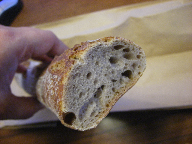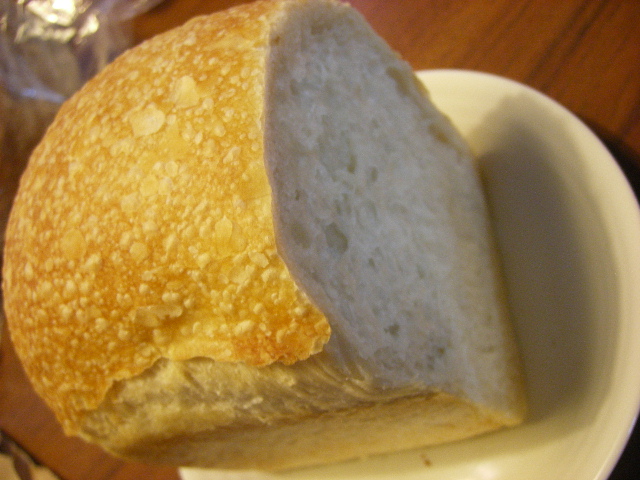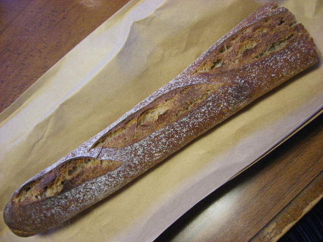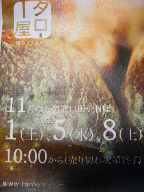 でも、絶対行く暇がない、って思ってたら、まだ間に合う、というので急遽行くことに。 「畑のゴボウパン、タロー屋」さんです。 香りが金木犀かどうか、までは正直わからないけど、とてもいい香り。 そして、キメが細かくてしっとりして水分たっぷりな生地です。これはおいしい。 結局生でそのまま、翌日トーストでバターと、食べましたがどちらにしてもあいますね。 ちょっと塩気が強い気はしますが。 食パンよりこちらのほうが好きだったかも。 見事な気泡ですよ!軽くトーストして、パーラーサンドを真似して、野菜を挟んでサンドにしてみました。 これがおいしいのなんのって。もっと買えばよかったなあ。 実はあんまりバゲット好きではないので、普段は買わないのだけど、林檎酵母に栗粉、というのに魅かれて買ってみたバゲット。 おおー。薫り高くていい感じ。 軽くトーストすると香りが引き立ちますねえ。 ベリー入りのクリチなんぞを塗って食べてみましたよ。 周りがかりっとして、中は水分含んでしっとり。2日目も変りませんでした。優秀、優秀♪ カンパーニュはやっぱり好きですね。 どれにしようかと、お品書きを見て考える。 なつめやし酵母が気になるので、そのコンブレ。 全粒粉だけど、キメが細かいのであまりめだたない、と言われましたが、いえいえ口に含んで味わうと十分全粒粉のぷちぷちが感じられますね。そして、これも又、水分たっぷりしっとり。 わりと乾いた系のカンパもきらいじゃないけれど、この水分しっとり系の方が好きだなあ。 次回はいつ行けるかしら。 下調べが十分でなく、なんとVIVANTに寄ったら、お休みでした。さびしー。(11月10日までだったかお休みだそうです。)