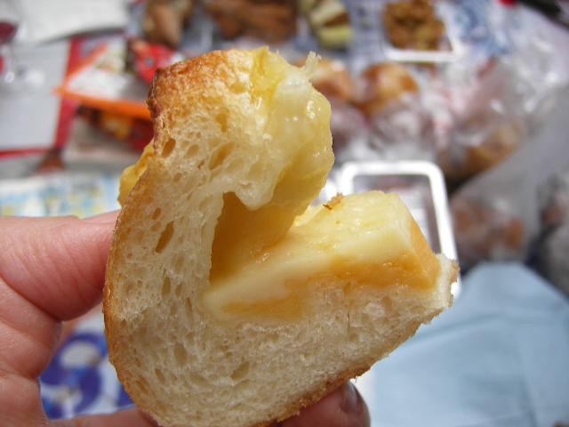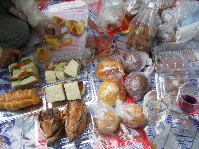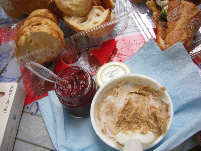 昨年の反省も含め、つまみ(もちろんパン)を持って。 ところが、想定外の混雑!!去年より絶対混んでるよ~っ。祝日だからしかたないか。 受付で700円払うと、ワイングラスをひとつもらい、それに注いでもらって試飲を楽しめる、という催しなんですが、10時50分に公園前で待ち合わせした時にはすでに長蛇の列。 受付自体はうまくはけていて、それでも30分くらいは並んでいたでしょうか。 皆でだべりながら並んでいるとあっという間の時間が過ぎて、無事1杯目をゲットしてから、場所確保。 運のいいことにケッコウいい場所に陣取れました。 用意のいい幹事さんがビニルシートを持ってきてくれたので、そこに皆で持ち寄ったものを並べ、交代でワインを取りに行きます。 手作りプルーンのジャム。 何せ試飲なので、グラスの多くて半分くらいしかついでくれない。(お店に寄って量はまちまち。) どのくらい全部で飲んだのかなあ?30店舗くらいのうち、同じとこにも行ってるから、8軒くらいかなあ? 興味はあったものの、すごく並んでいたのでまあいいか、と。 みんなの持参のパンだのなんだのが多くておなかがいっぱいなのもあって。 でも、アラフォーな人が買いに行ってくれたので、ちゃっかりお相伴に。 これは美味しかったですよ~。 来年も又来たいなあ。混んでても、それはそれ。楽しかったです☆ PR