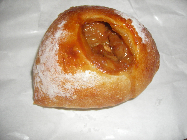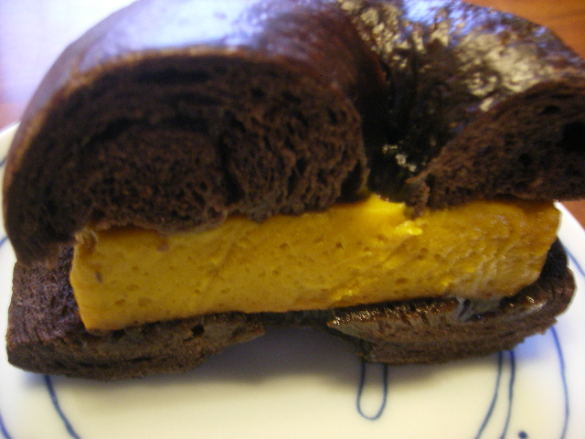 10/04/15:51 かぼちゃでハロウイン~♪ハロウインベーグル。 アーモンドがでかい眉みたいで、顔しかめてる? おなじみ南瓜の生地で(この生地のベーグルは好き!!)中にはチョコとかナッツが詰まってる。重いね、相変わらず。 10月1日から値上げされたようですが、今まで安かったからいいんじゃないでしょうかねー。 なんとかハロウイン終わる前にモンスターを捕獲に行かなくっちゃ。 全滅する前に。(笑) さて、その日もその日とて、カレーランチの後に、ちょっとどこかパン屋さんに寄ろうかな、ととても時間が微妙だったんだけど、思い切ってポムベーグルに行ってみました。案の定、ベーグルは3種類しか残っていなったんだけど、サンドで目を引いたのが、これ。 「かぼちゃプリンサンド」 チョコベーグルでかぼちゃプリンをサンドしてます。 実はこのプリン系のサンドを食べるのは初めて。 食べにくいんじゃないか、って勝手に思っていたけど、そうでもなかったです。 さすがに噛み締めるとはみ出たけど。ぐじゅぐじゅって。(笑) しかも後でポムさんとこのブログを見たら、これ、ハロウインのだったんですねー。らっきい☆ チョコ生地にかぼちゃの甘味が(ほどよい甘味)ぴったりで、おいしいスイーツサンドです! ここの2つのお店の共通点みっけましたよ。 プレーンな系統のベーグル買うと、切らないと種類がわからん・・・。 PR