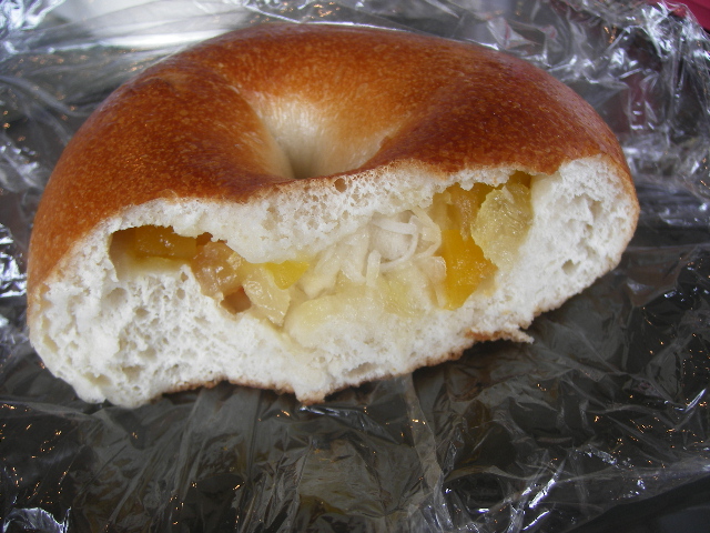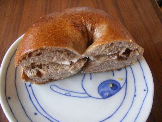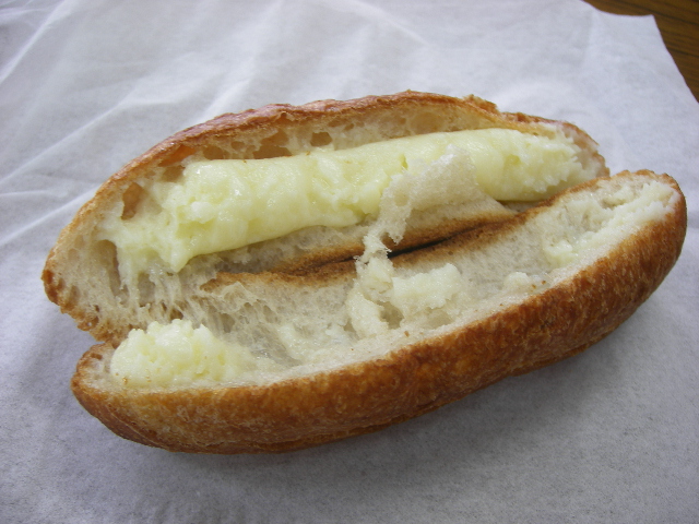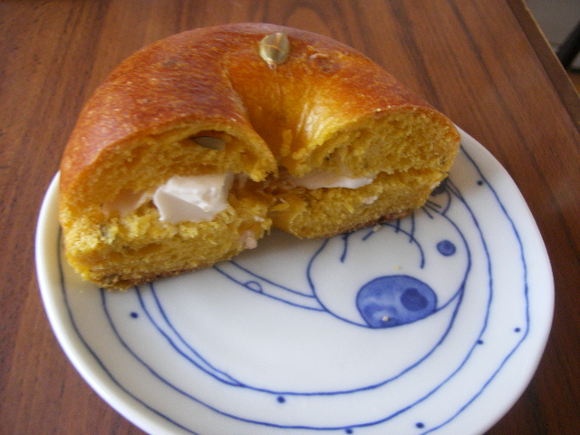 それほど暑さもしんどくないじゃない、とか たかくくってましたら、 とんでもございませんね。 もう処理しきれないくらい、猛暑ですわっ。 だもんで、ついついスパイスに走ってます。 でも、パン食べてないわけじゃないのですが。 てなわけでまとめていきます!! ベーグルカンパニー、シナレズ。 最初、こりゃーえらく相性悪いんじゃないかい? と思いましたが、舌の相性はいいようです。 同じくベーグルカンパニー パンプキン 両方ともスタンダードにクリチ挟んで食べてます。 トロピカル。 南国フルーツのピールが真ん中に練りこんである感じ。 ピールの硬さと生地の硬さがバランス悪い気がして残念。美味しいのは美味しいです。 2回目の来店です。 これはミルククリーム。 外見、kenさんとこに似てるような無骨な小さいバゲット、実はもっと繊細で、追う少し柔らかい(笑)のに、結構な量の練乳がはさんであり、これは、うまい!! 友達のお奨めで同じくル・ルソール、 「シス」 うん、確かにおいしい。 名前忘れちゃった。。。 おいしいからこれはリピしたいのに忘れちゃったよ。 こんな形状だからあきらかにわかるとは思いますが。 でも、それにしても、ル・ルソール、通過駅なんですよね。 なかなか途中下車しないんだよなあ。 (あと、もうちっと安いといいんですが。小麦高騰の折、仕方ないか。)