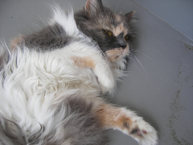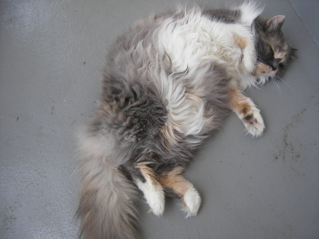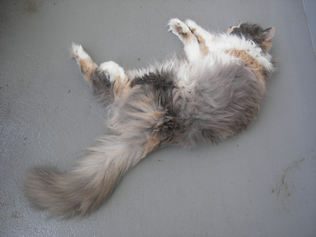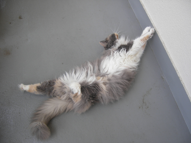 07/14/18:41 暑くても猫はお外でのびています。誰かくると「にゃっ!」とアピール。 お外暑いよ!! と言われても「にゃっ」 そしてこの自堕落な姿。夏毛に生え変わってません、まだ。 ・・・なの? のびいいい~~~~! ・・・なんなの、このどーぶつは。 暑いから中、へーれ! いやよ、返さないわよーだ。 と、爪出して叩かれました。 さすがに、日中は食欲減退してますが、夜になると食べてるしで、結構元気です。 よかった。ほんとに。 血液検査の数値は横ばいです。あがったのもあり、下がったのもあり。 黄疸の数値は少しさがったかな。 そんな感じ。
