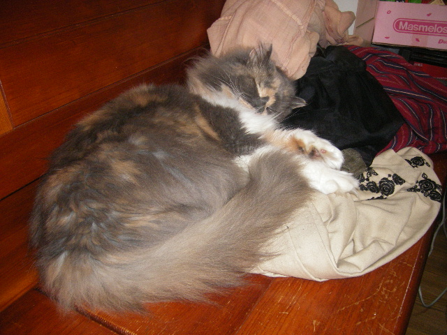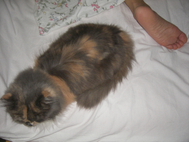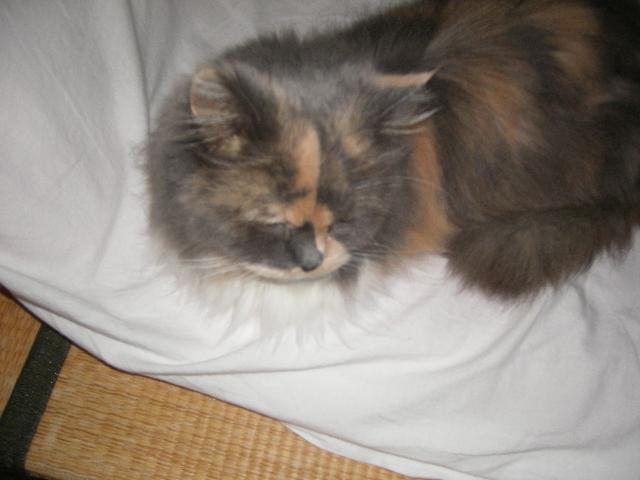 先日も黄疸の数値があがってどきっとしましたが、食欲増してます。 ただ1缶400円位する処方食の食べがここのところ悪くなってたので、 色々調べてみて、ドライフードでみつけたのをドクターに聞いたらあげていいということなので あげてます。よく食べます。 ただ、ネットでみてると、非常に評判悪いんですよねー、 獣医さんも薦める、ヒルズの処方食。 食べると嘔吐するとか、ウン○が柔らかくなるとか。 嘔吐の回数がなんとなく増えてるようなんですが、 吐くのは胃液とかじゃないし、吐いた後もけろっとしてるので問題なさそうです。 ペットフードの業界も大変なんでしょうけど、 確かに色々調べてくると、フードの中身、気になってはくるんですよね。 まだこれからも油断せずに調べて行こうと思います。 先日は処方食でないけれど、合間におやつがわりにあげようと、初めて「モンプチ」買ったら、 すっごい食べるんですけど。 味濃いんでしょうかね。。。 ところで、12年間一緒にいて、今回まったく初めてな仰天ニュースをしてます、こいつ。 今までしたことないこと・・・、だんなの足元で突然寝たんです! だんなの足。 まあね、なんとなくリラックスしてない感が見えますがね。 やや緊張のおももち。 慣れぬことをするせい?(笑) こんなことをすること事態が、病気の証拠だ、というむすめっち。 反論はできませんなあ。いや、まったく。 次回の血液検査は来週。 ガンバレー猫姫。