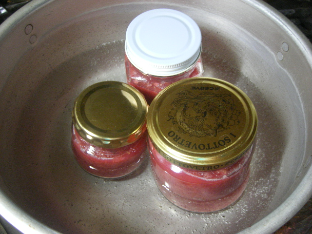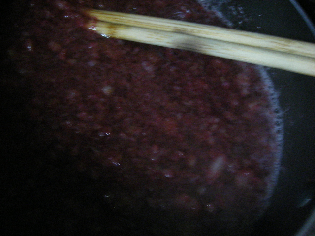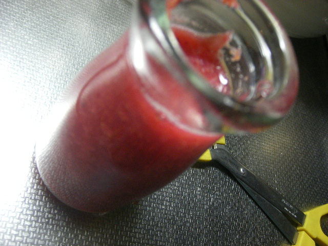 07/09/21:48 ヤマモモ仕事だーりんがかごに大盛り3個分、もらってきました。 今年は暑いせいか、実が赤い! ジューシーで、生で食べてもかな~りおいしい。 水分、足してません。 今年のはほんとに水分多くて、少し火をかけるとどんどん水分が出てきます。 形がくずれてきたら、グラニュー糖投入。 量はかなりいいかげん。(笑) よくジャム煮る時は三温糖とかきび砂糖使いますが、ヤマモモは色がきれいなので、色をそのままだしたいからグラニュー糖使います。 軽く蓋をしておいて、お湯から出した後、しっかりしめます。 ←これが役にたってます。 哺乳瓶のトング。 調度いいのですわ、ジャムの瓶の大きさに。 今回のほんとにジューシーなので、 ジャムの瓶に詰めた後、シロップが残っちゃったので、それも小さいプリンの瓶に入れて、即ヨーグルトで食べることにしました。 ヤマモモソース、ですね。 後、もう1かご分、作らなくちゃいけないんだけど、明日かなー。 野生っぽいやつなんで、アクが強く、親指の腹がずるむけちゃうんですよね。 まあ、それも楽しからずや。 PR