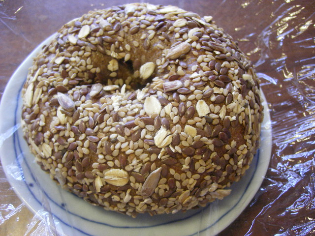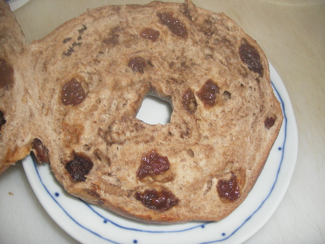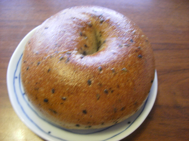 色々縁のある駅で、ムスメっちの幼児教室、その後スイミングクラブ、その後タップダンス、と(どっちもムスメっちです)何故か向ヶ丘通いをしてました。 その頃のムスメっちの友達も住んでるし、その子のお母さんは、ワタシに手作りパンを食べさせてくれた初めての人です。スーパーウーマンで、なんでも手作りしてましたな、こんにゃくまで作ってた。 閑話休題 南口降りて、交番横から汚い川を渡ってすぐの横道入ったところ。 その角にこんな看板、出てます。 親切だ。 この駅から来る道は、専修大学の学生の通学路なので、結構うざいです。 まあ気にしなきゃそれでいいんですが。 専修大生はベーグル買うのかしら?素朴な疑問。 こんなかんじのさっぱりしたお店です。 なんとなく、大阪のH&Lのお店を思い出しちゃいました。 似てるような似てないような。 訪問したのは、平日の昼下がり。 そこそこたくさんありましたが、プレーンは売り切れ、天然酵母のマフィンがあるようだけれど、それも売り切れ。後幾種類か売り切れはあるようでした。 お店の方にうかがったら、いちおう、開店時にほぼ揃うように焼いているようなので、行けるのなら午前中に伺ったほうがいいようですね。 こちらのベーグル、ぱっとみは、高円寺の名前忘れちゃったよーのパン屋さんのベーグルに似てました。そこのベーグル、好きなんですが。 ある種類の中から買ったのは、 こちらは即食べてみました。 抹茶とオレンジ(上)、アップルハニー(左)です。 食べてびっくり。 美味しいかも!! 引きが強い。もちもちはしてないけど、かなりむっちり。 皮もむっちりで噛み応えあり。 あたためないで食べたので、あたためたら多少軽くなるとは思いますが、これは、他のベーグルも食べるのが楽しみですね!! アップルハニーとかの生地を食べてみる限り、かなり美味しいプレーン生地だと思います。