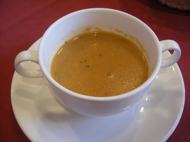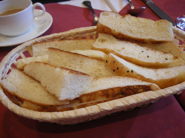 ここはさすがにおばさまたちはいない。 12時になると、それでもあっという間に席が埋まってしまいます。 ランチは1000円。日替わりとAセット(チキン)、Bセット(牛肉)の3種類。 雑穀入りだったかな? 薬膳スープのようで、薬くさくもある。(ちょっと外国の粉スープのようでもあります。) 慣れるとそこそこうまい。(ちょっとね。) たぶん、エキメッキというやつ。 フォカッチャのもっとソフトでもっちりした感じとでもいいましょうか? これがすんごくうまい!! 切り方が違うけど同じパン。 一応お代わりできるようです。 これ、お料理のソースつけてどんどん食べれちゃう。とにかくおいしい。 と思いきや、御飯の上にのっていた。いずれにしても随分な量があり、満腹。 お肉の側はホイップしたクリームチーズ。 これでお肉を食べると比較的さっぱりなお肉が濃厚な味わいに。ほほーう。うまいぜ。 チキン?とかの重ねオーブン焼きの日替わり料理。 見事に2対2で。 こちらはごはんは別添えですね。いずれにしてもパンもごはんもしっかりついている。ごはんは、サラダ感覚なのかもしれません。 両方とも、ソースのベースはトマト。 御店の表までスパイスプンプンなわりには、全然スパイシーでない味付けなのが不思議な感じがする。 こちらも「チャイ」というのね。 ストレートのチャイです。ミルクなし。 さっぱりする。 お店でないとわからないけど、ちょっとだけパフォーマンスっぽく、チャイは供されます。おもしろいよ。面白がる暇はないけれど。