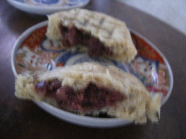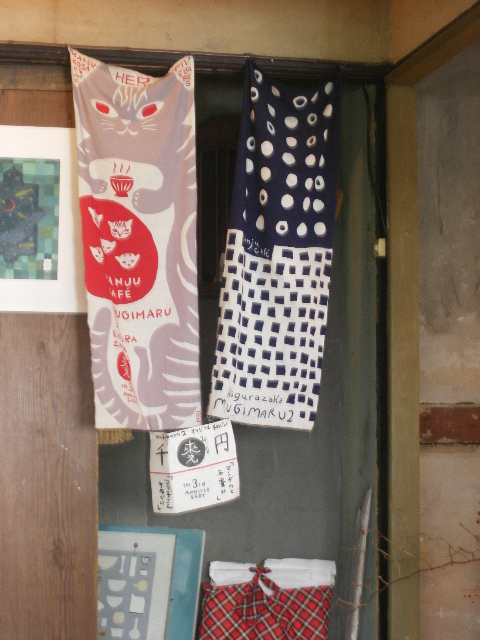アメショーグレーの、「松子」さん。 なんてしぶいお名前。でも、まだお若いようですよん。(2歳くらいらしい。) この子がお散歩から帰宅したと思われる、そんなお店にトルコ料理で2名と別れ、残った2名は入ってみました。 (だって、松子さんがどんどん2回に昇っていっちゃうんですもの。) そのお店はおまんじゅうの和かふぇ、「MUGIMARU2」 (1は?) 1階に厨房とテーブル席。 2階に座敷。ちゃぶ台とかがあるわけです。 階段の横にかかっているのは、このお店のオリジナルだという手ぬぐいが。 さすが、しっかり猫の柄です。ほしくなっちゃった。 今回は買わなかったけど。 2人ともアイスチャイを頼む。 スパイシーでおいしい。 おなかがいっぱいなんだけど、ついついうまそーなんで、ジンジャーまんも注文。 随分なジンジャー風味でこれは美味しい!! あんこもしっかり作られているようです。 あずきがおいしい。そして、ジンジャーとよくあって、甘ジョっパクも感じる。 いやあ、おいしいです。 側には松子さんが丸くなって寝てるし、これは素敵なかふぇですね。 他のお饅頭も今度食べてみようっと。 あ、テイクアウトもできるみたいです。楽しみ楽しみ。 で、この前は亀井堂に行ってみたので、今回はここでおみやげ。 ペコちゃん焼き。 おいしいよね、これ。