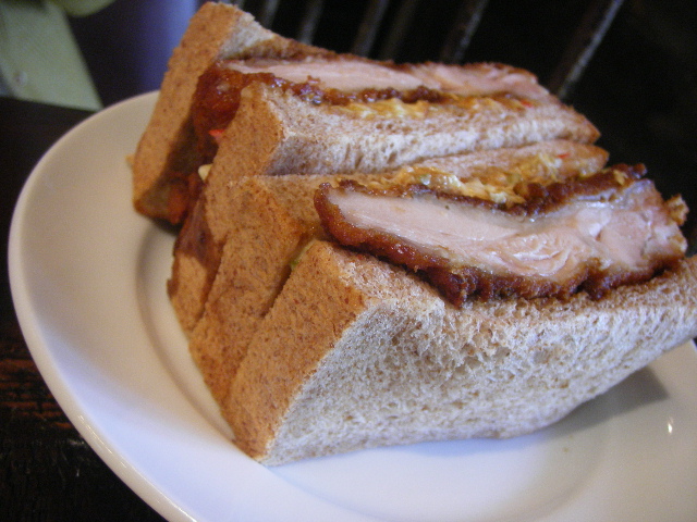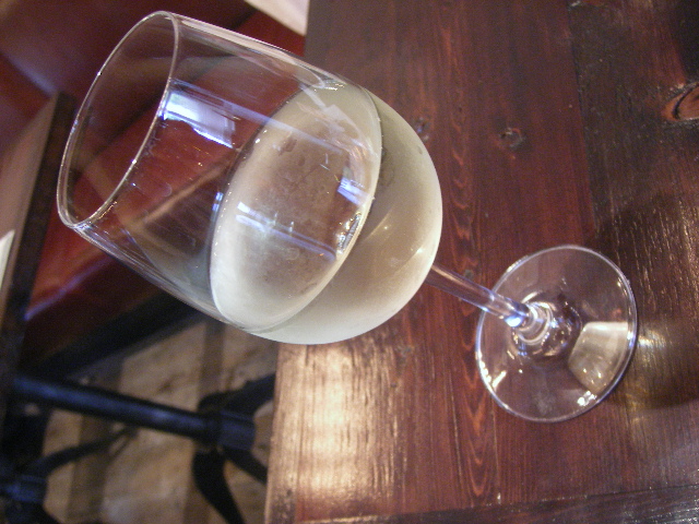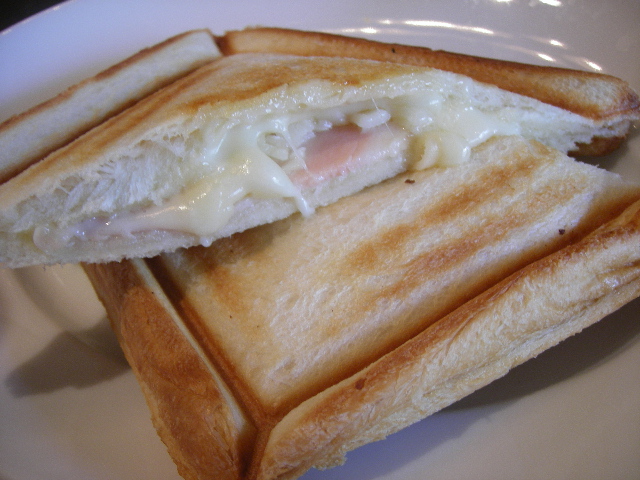 こちらはおもったよりももっとスタイリッシュなお店の雰囲気。 いりぐち入ってそれなりに広いスペースの売り場があり、 レジでお持ち帰りか店内で食べるか申告するタイプ。 イートインも先にお支払いです。 わかりやすいシステムで好感。 パン売り場もパンがたくさんでわくわく!! そうそう、バータイム?があるのよね、ここ。 ランチワインをいただきます。 そしたら、ランチはこれかな? マリボーチーズとハムのホットサンド。 とろんとろんとしたチーズがたまりません。 ちゃんとお皿にのせてサーブしてくださいます。 この2つのサンドを半分コしていただきました。チキンカツさんど、なかなかすっごいボリュームです。美味しかった!