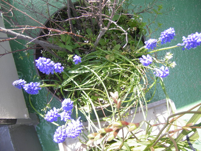 秋になってから整理して、自然に任せて屋上に放置していましたが、 たくましいですね。 いつのまにか、芽吹いて花を咲かせてくれました。 引越ししたお友達のうちから引き取って、もう5年上になるムスカリ。 今が満開。 ダメになったかと思ったけど、脇から新しい枝が。 素晴らしいですね、生命ってすごいなあ。 その下ばえにしっかりとムスカリが満開に。 ジュリアンとヴィオラ。 元気です。 この前下北のオオゼキで買った198円のパクチー。 パクチーって移植を嫌うんですってね。 お友達のアヤちんが教えてくれたので、植える時に根の土をはらわないようにして植えてみました。今のところ元気です。もう少したったら一度積んでみましょうかね。 まだ後から出てきそうなので。 いつも必ず植えている、チューリップとかアネモネを今年は植えてないので、来年はもう少しがんばりたいと思います。