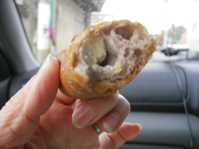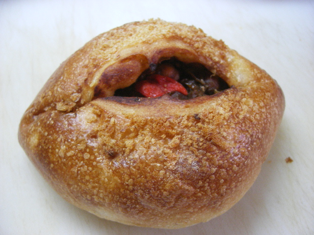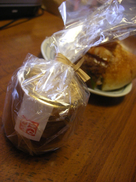 そうそう、そういえば、ひねさんも4周年だったのだ。 ・・・のわりには、考えていた電車より1本遅れ、ふーんだ、でも、ちゃんと15分前に着いたよ。1番でした。 土曜なのに。 10分前を過ぎたあたりで後ろにカップルさんが並び、地元の人らしい方たちが並び、人が増えてきた。 おねえさんがいつものように看板を出して、準備をしてどうぞー、っと。 いつもこの「おはようございます」の挨拶の瞬間が好き。 カーテンがあいたとき、ガラス戸から垣間見えたもの。 わーい、あった。 今日はないだろうなあ、と思っていたのが4周年記念のジャム。 皆さんに、とくださると聞いていたのだけど、今日はないかな、と思っていたのでした。 いただいたジャムはあんず。 おねえさんが、「少しですみません」と言ってくださったけど、いえいえとんでもない。 その気持ちがうれしいです。 ジャムの種類は、いちご、ブルーベリー、そしてあんずの3種類でした。 これの準備も大変でしょうに。 もう4周年なんですね、ワタシがひねの存在を知ったのは、たぶん1周年は過ぎてたと思うけれど。 今日は出歩くし、あたたかいから買うのやめようかと思ったけれど、久しぶりにどうしても食べたかったので買ってしまった、雑穀ゴマバーガー。 車麩バーガーはなくなってしまったけど、雑穀ゴマバーガーはあるんだから、又買いに行こう。 アクセントのクコの実が可愛い。 結構辛いのも好み。 ヒヨコマメがしっかり形が残っていてごつごつしているのも好み。 このまわりの生地が弾力があって、噛み締めなきゃいけないのも好み。 噛み締めると結構辛いのよ。 でも、辛党としてはもうちょっと辛くても・・・ ま、でもそうしたらひねっぽくなくなっちゃうよね。 ワタシの中では、フラッフィのクリームパンと同列1位くらいの位置かなあ。 この日は、直ぐ食べなかったのもあったせいか、生地とクリームの調和がちっとあれれ?と思ったので、1位は譲られる。 でも、直ぐ食べていたら、どうだったかはわからないけど。 この生地も弾力があるし、むっちりしてるので、もしかしたらクリームに対してもう少し柔らかめナ方がいいのかも。なので、たぶんすぐ食べた方が調和がいいんだろうな、と思いました。 いつもの○パンも買いましたが、冷凍庫しまっちゃった。 大好きないよかんピールのパン、食べるのは会社に持って行って食べます。
