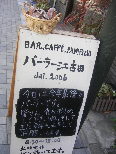 そりゃもちろん、パンですよ!これ、パンブログですよ?なーんてね。。。 まあね、ワタシがね、いけないんですけどね、 そんなわけで、(どんなわけもないんですが) 昨年末は関西からのお友達と、随分まえからあーだこーだ、結局ぎりまで予定決まらないしな。 つまり、彼女の来る日、回れる日にあいている(まだやっている)パン屋さんを確認して、ルートを考える、とまあこういうわけですな。 待ち合わせたのは、大江戸線新江古田改札口。 考えたら、一回しか会ったことないのに、なんでか全然わかんなかったらどうしよう、とは思わなかったんで。(魔性の女ね。ヤツ) 黒板もすっかり年末。 この日は最終日です。 結構早い時間に行ったのだけど、しっかり混んでてカウンターも満席。 少し待たせてもらうことをこうじさんにお願いしてすぐ側の公園で20分ほど待って(待つ身も話が途切れないので全然おっけー。おまけにあったかかったしね。)カウンターに座れました。 友達の食べたかったのは、リュスで全部のせ。 リュスは待ってる間に売り切れないようにとっておいてもらう、という用意周到さ。 こちらのプレートは、サラダもたっぷりでうれしい。 そこにドリンクはカフェラテでたっぷりこん。 おなかもほっこり、気持ちもほっこり。 なんですが。 店内で食べるとアイスを添えてくれるのがうれしいですね。何せアップルタルトだし。 うーん、大満足です。 お友達も満足してくれたようでよかった、よかった。 この日パーラーさんは最終日でどんどんパンが売れていく。 少しお客さんも途切れたので、ゆっくり話しているうちに焼きあがったヴィスコッティ。 思わず買い込みました。(笑) さて、満足したわたしたちは、次のターゲットへ。 結局、この日まわったのは、こういうルート。 大江戸線新江古田→徒歩西武池袋線江古田(パーラー江古田)→池袋経由、渋谷(フラッフィ)→池袋経由で西日暮里(ianak!)→再び池袋経由で目白(ZoKA COFFEEで休憩、その後かいじゅうや)→新大久保(Tapir) ワタシはianak!は初めて。 お友達は2度目。案内してもらいました。(笑) たくさん歩いてたくさんパンをゲットして、何よりたくさんしゃべれて楽しかった!! 股(←誤変換ではございませぬ。)のお越しをお待ちしてますよ。 一緒に珍道中しようねー♪ PR