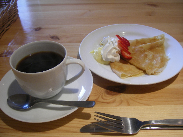 のわりにはとってもわかりにくい路地の裏(すっごい昔、映画館があったらしい。現在飲み屋街)にある オレンジカウンティ という、クレープカフェ。 おもしろいたて構えで、線路側からだとクレープのテイクアウトの窓口しかなく、 カフェの店内でクレープも食べれるものの、カフェ店内に入るには そこからぐるーっと回って反対側から来ないと入れない、そんな不思議なお店です。 以前は駅から一番にぎやかになってたのに、昨今やや寂しい感じの大きい通りにカルディーがつい先日出来、 そのはす向かいくらいに看板が出てるときはやっている。 と思っていたら、先日看板出てなかったのにやってましたよ。 で、2回目のガレットランチ、800円。 ハムにチーズにトマトに卵、の全部のせ。 ルッコラやベビーリーフも山ほどのってきます。 凄く大きいわけじゃないけど、結構なボリュームがある。 これ、いつも思う。お得だよね。 中身もっちり系。まわりはこの日はかなりぱりぱりで好みでした。 そば粉のガレット。 これにはおおばんぶるまいで、このお値段でデザートクレープもつきます。 この日はこんな感じ。 珈琲をつい頼んでしまう。最初頼んだときに濃さが好みでおいしかったので。 量もタップリ、これポイント。 で、クレープは、これまでいつもバナナクリーム(キャラメルかチョコ)だったのが、今回は苺生クリームカスタードだった。 しっとりもっちりクレープにカスタードと生クリームで苺を巻いていただきます。 うーん、うまい。 安いと思うとよけいうまい。(ビンボー人なもんで。) さて、次回はなんにしようかな、 カレーかな?ラタトウイユかな? そんな、連休の狭間の一人満足ブランチどした。